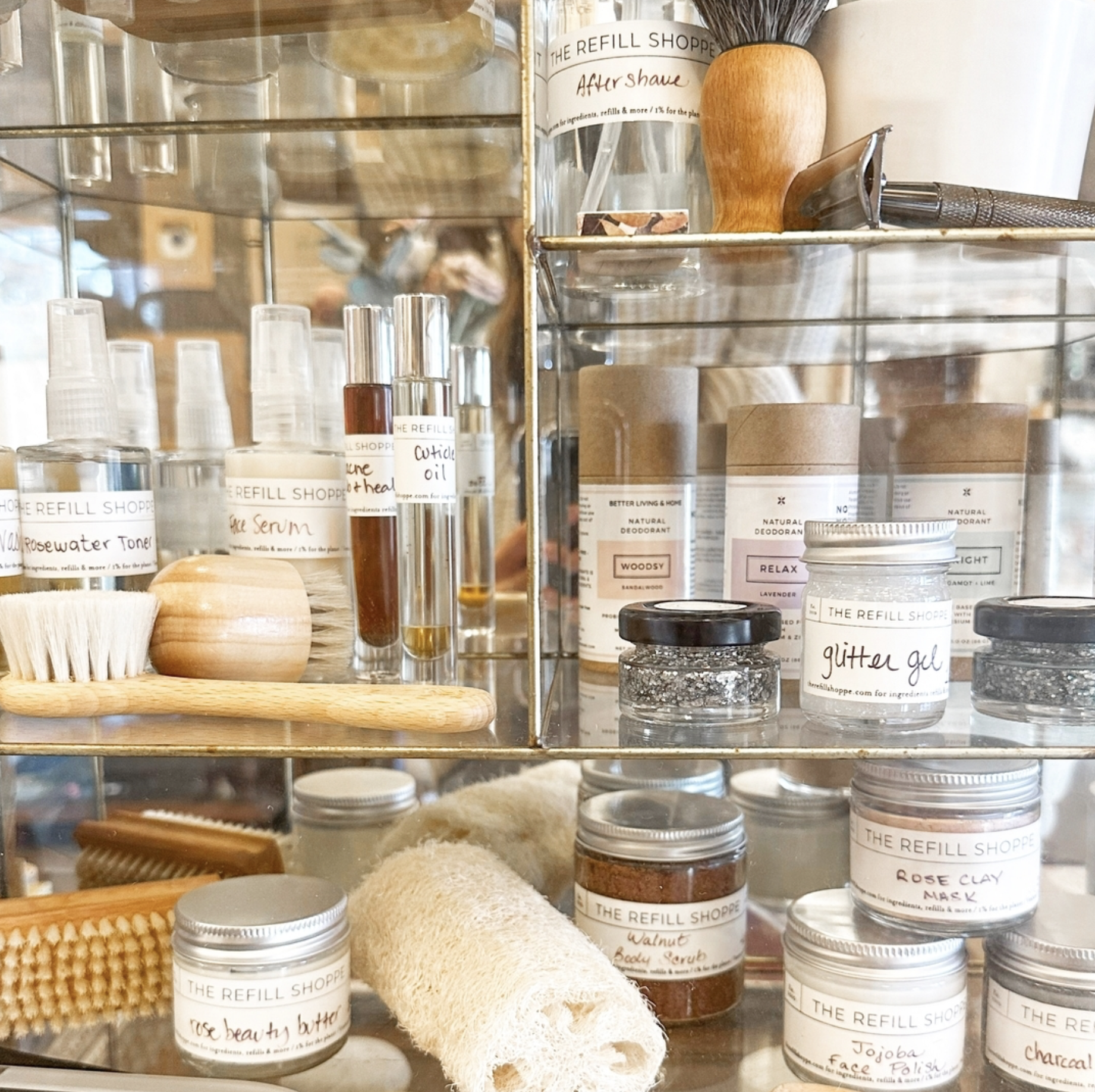 The Refill Shoppe in Ventura California is a gorgeous storefront selling natural products in refillable containers. The project included an updated logo, and a single, flexible label for all their jars, bottles, and tubes. With a dramatic range of packaging sizes, the challenge was to create a label that worked on the smallest label in the shop, that allowed room to write in the product description and scent. I created a flexible and clean solution, and I’m deeply impressed with how the Refill Shoppe has taken this work and created a coherent brand experience that serves their earth and health conscious customers. All photos are from the Refill Shoppe, if you’re in Ventura, give them a visit.