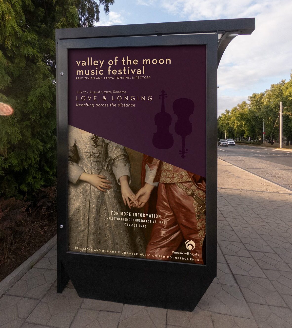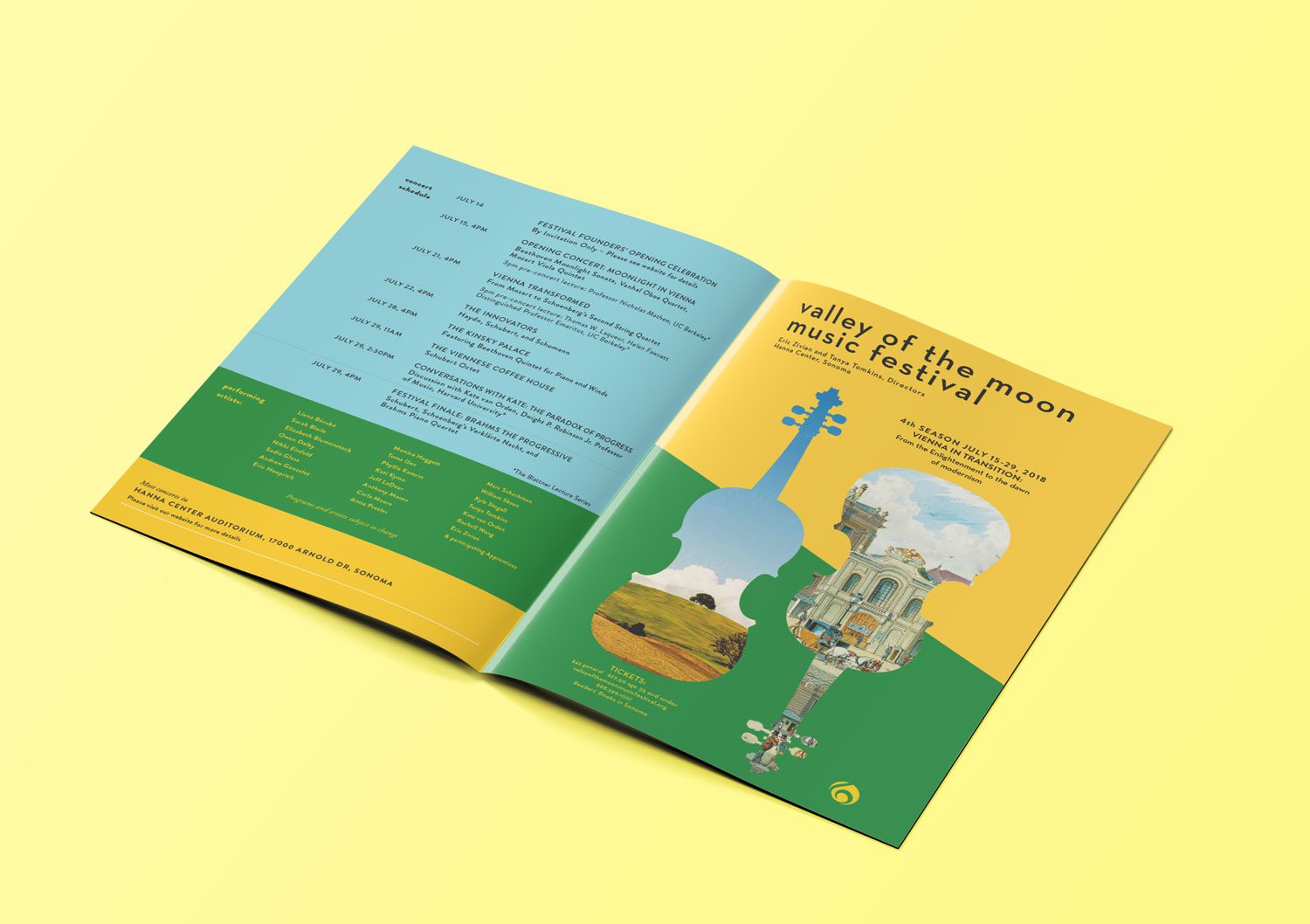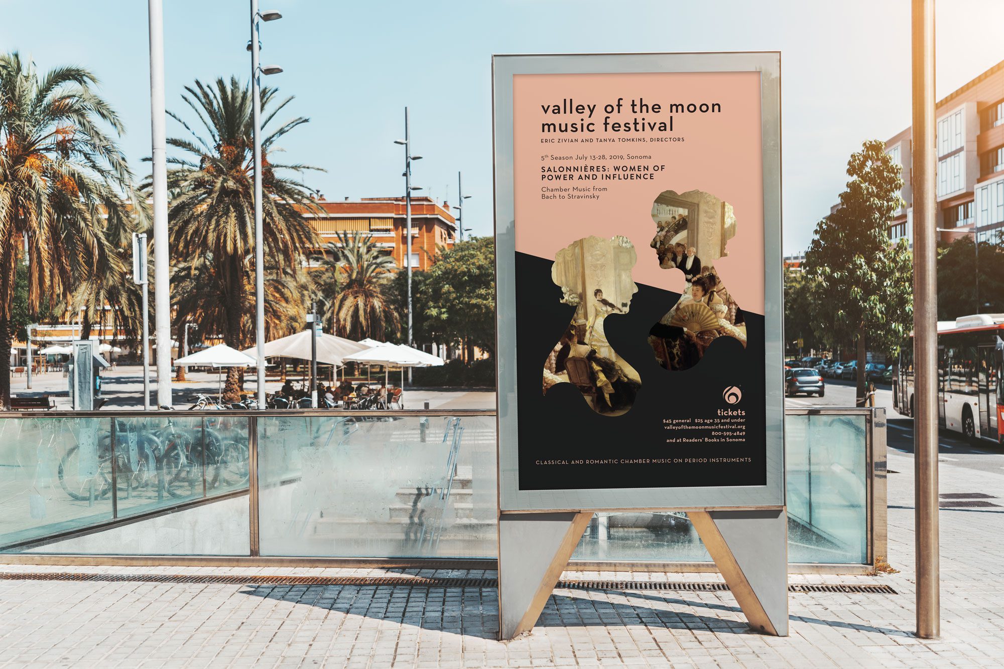 Valley of the Moon Music Festival is an annual event in Sonoma, California that performs classical music on period instruments. The event is a blend of the traditional and unexpected. The design successfully reflects that balance and reaches a younger audience without alienating its regulars. The solution to this design balances opposites in harmony.